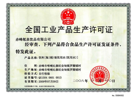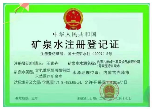矿泉水注册证
